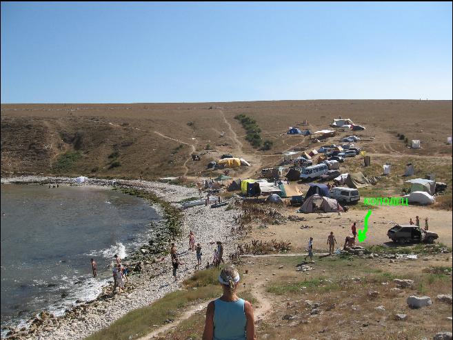 Добрый день, уважаемые жители форума. Сразу прошу прощения за идиотское название темы, так людям на просторах Интернета будет проще найти тему. Вчера вечером просматривая отзывы о мысе Кипчак, тот который на Тарханкуте, обнаружилось, что как таковых отзывов о самом месте нет. А те, которые есть, не совсем соответствуют действительности. Принято решение написать всю правду, без приукрашений и прочих эмоциональных текстов. «Скандалы, интриги, расследования. Раскрыть - все что скрыто» J Начнем сначала (дорогу из Киева упущу, ничего примечательного в ней нет, дорога как дорога, ямы, ГАИ и т.д.) Перенесемся сразу в пгт. Черноморское, расспросив у местных как проехать к мысу, сворачиваем к старому кладбищу и постоянно придерживаемся всех дорог правее (то есть всегда направо на развилках). Хочу сразу сказать, если у Вас седан - Вы неудачник, Если у Вас универсал - Вы неудачник, про крики о высоких седанах забудьте, тут нужен только Джып, хотя сойдет и паркетник, главное это полный привод. Расскажу почему чуток позже. Дорога на сам мыс представляет собой смесь глины и земли, которая в сухую погоду ничем не отличается от асфальта и протяженность ее составляет 6-7 км. В принципе, на седане 30-40 км в час по ней ехать можно, при этом опасаясь конечно камней, дабы не оставить там масло двигателя. Далее перед самой бухтой, Вас ожидает небольшой спуск дистанцией метров 100-150, что бы понимать угол спуска, достаточно проехаться по улице Шелковичной в Киеве и в уме добавить пару десятков ям и колейность. В виду того, что в первый год я ездил на Хюндай Туксоне, а во второй год на седане с «супер клиренсом» (Сивик), то разницу прочувствовал с первых метров полевой дороги, получив сразу удар камнем о днище машине. Спуск в 100 метров с этой самой горы занял у нас минут 20. Постоянно не хватало место от земли до бампера, просмотры и всякие остальные действия связанные с сохранение товарного вида авто и убили эту часть времени. Ну да ладно, спустились. Место для палаточного городка нашли сразу, благо это был конец июня, и было из чего выбирать. Для нас, троих человек был принято решение брать каждому по палатке + палатка геологов (6 местная). Из необходимых вещей список таков: Газовая плитка, 5 баллонов газа, складной мангал, 3 шезлонга, стол, стул, кастрюли, ножи и т.д., топор, саперская лопатка, казан (на кой то хрен взяли), и !!!ОБЯЗАТЕЛЬНО навес!!! Все остальное каждый берет по своей необходимости, это именно список того, что просто необходимо. Самой ненужной вещью оказался казан, так как потом на «совещании совета бедуинов» мы поняли, что все приготовленное в нем, уже завтра испортится. Сам мыс Кипчак представляет собой поле с выходом к морю, без деревьев и тени, одним словом бухта. В конце июня там уже достаточно много людей, около 100 палаток, но недостатка на пляже Вы не ощутите, так как он достаточно большой и на 10 км метров вы точно будете одни. В бухте есть маленький магазинчик, в котором Вы можете договориться о зарядке своих современных устройств током, тоже самое, можно сделать в любом ресторанчике города. Так же в бухте присутствуют рыбаки (про них подробно позже), у них иногда можно купить улов в виде кефали, правда по ценам дороже чем на базаре в городе, ХЗ почему так. Ассортимент магазина представляет собой выбор напитков и сигарет, майонезов всяких и кетчупов, иногда запечатанна