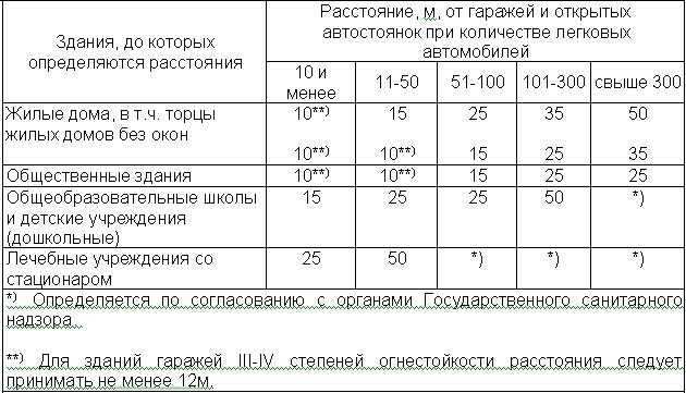 7.50 Расстояния от наземных и комбинированных (наземно-подземных) гаражей и автостоянок легковых автомобилей до жилых и общественных зданий следует принимать не менее тех, которые приведены в таблице 7.5.