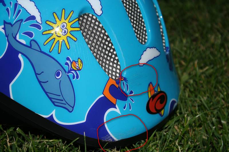 Решили мы вчера катнуть немного. Я и жена и дочка 6 лет на 20-дюймовам МТВ. Спускаемся вниз по Рылеева, кто не знает, там довольно приличный спуск. Я иду первым, за мной доця, потом жена. Каюсь,но разгоняюсь до 25, может и 30, ловлю передним колесом ямку, кричу "ЯМА", но поздно. Слышу сзади грохот, дочка упала. Если честно, то было страшно. Подбегаю - плачет. Беглый осмотр - ничего нету. На коленках еле заметные ссадины, даже без крови. Руки в перчатках - полностью целые, приняли основную нагрузку на себя. Шлем с довольно глубокими царапинами. Также нехило поцарапаны рожки на руле. Поплакали мы 2 минуты, и то в основном от испуга и поехали дальше. Дальнейший путь до ГЭС и назад прошёл без исключений. Посему вывод - детская защита(да и не только детская) маст хэв.