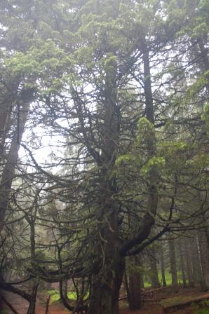 Решили с женой съездить в Карпаты на эти выходные. Сказано-сделано. Взглянув на прогноз погоды, были немного расстроены - дождь, дождь и еще раз дождь. Но легких путей мы не ищем, да и отступать уже некуда было. Выехали из Киева где-то после одиннадцати вечера 24.06. Заодно и решил протестить смартфон в качестве навигатора. Выбрал конечную точку (карты iGo) и поехали - особа даже не смотрел как маршрут будет проходить. В ходе езды уже примерно определил как едем. По маршрутизатору путь составлял 631 км, по одометру проехали примерно 650. Киев-Житомир-Чуднов-Ямполь-Тернополь-Тисменица-Яремча-Поляница. От Чуднова до Ямполя дорога не ахти, ехать можно комфортно около 100. Жили в чудесном (на правах рекламы) арт-отель "Выкрутасы". Обстановка и сами хозяева просто нет слов. Буду всем советовать и поедем еще раз. Первый день посвятили отдыху (так как прогноз погоды нас не обманул): отсыпанию, баньке и опять отсыпанию, с перерывом на покушать. А покушать можно практически все из украинской кухни с карпатским акцентом. Второй день был посвящен походу на Говерлу. Тут уже нам повезло. Дождя утром не было, но присутствовала низкая облачность. Решили все таки идти в небеса. Все сразу фото вставлять не умею будет все по очереди. Дерево прям как из русских сказок про дремучий лес.