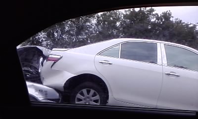 Последний - WV Bora, больше всего пострадавший, въехал прямо под Camry. Притом, что багажник у тойоты почти не пострадал. .