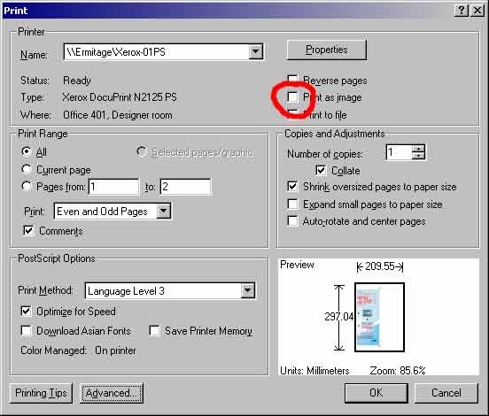 Кто подскажет,где собака порылась ?Проблема с латинским шрифтом ,когда выгоняю на принтер,причем не во всех случаях. Слева-так печатает принтер .Справа-так я вижу на мониторе. Удалось корректно напечатать страницу с соседнего компа,по сети. Это началось после установки русской версии Adobe Acrobat 5,0 поверх английской.Un-инсталл ,re-инсталл никчему не привели.Все старые ридеры и фулл акробаты удалил.Просадил Acrobat Professional 6,0,теже я..а ?Полазил по настройкам-не получилось .Где это руками исправить можно,у меня винда-ХР?