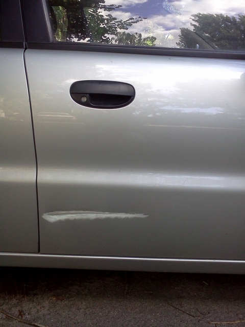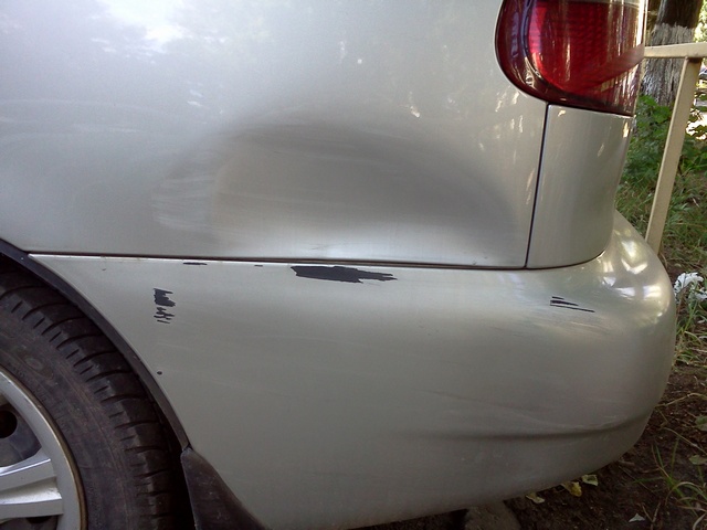 Грубо - 3 элемента рихтовка+покраска, порядка 600 $. А по факту: - на переднем крыле обычный "хлопун", должен выщелкнуться (правда, как себя краска поведет, ХЗ, может и потрескаться) - заднее крыло тоже несложное, только в нижней части вроде как ребрышко задето - бампер - ерунда - вот дверь - похуже, царапина глубокая, судя по всему: рихтовка.