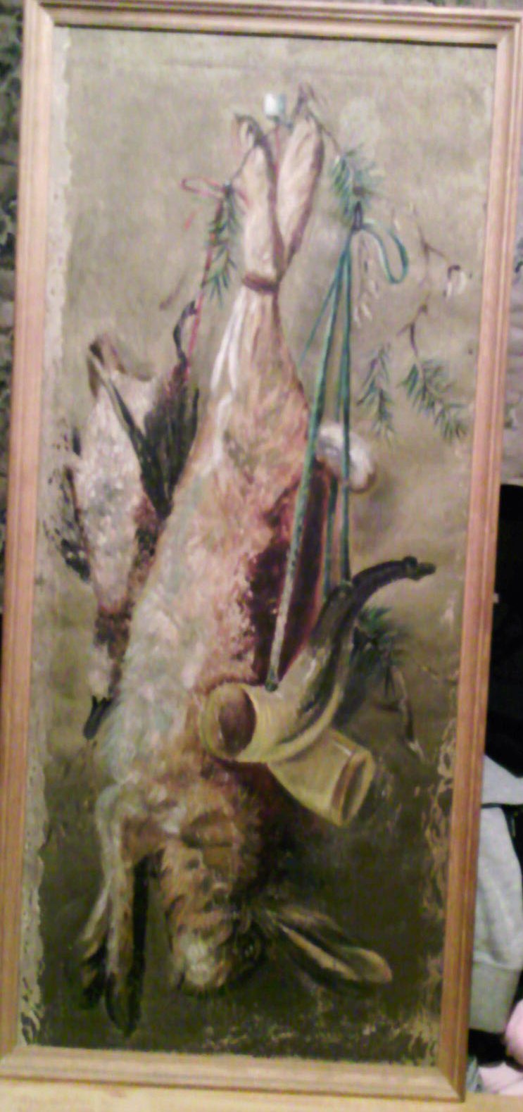 Помогите оценить хотя бы примерную стоимость картин.Картины для любителей охоты,изображена дичь,есть инициалы С К 1905г.Были преобретены дедом в Германии в 40-вых годах,размеры 38 на 88см.Есть ли в них какая то ценность?