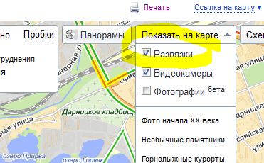 На Яндекс картах есть, нужно только слой єтот включить, там даже можно на развязке указать откуда и куда надо выехать и оно нарисует