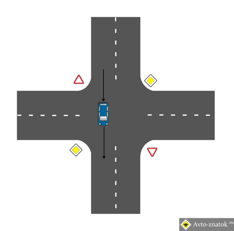 Подожди, мы едем по второстепенной и пересекаем главную (то есть находимся на перекрестке). Тут как бы можно говорить о том, что желтый бус (и те, кто с ним) должны дать мне завершить маневр.