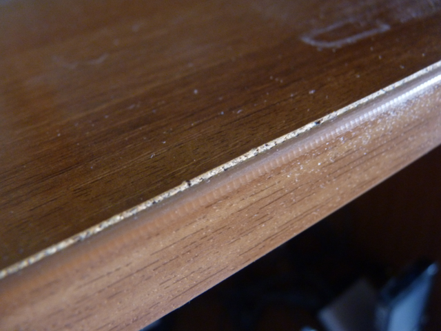 Не, ну ё-маё. Мне своим глазам не верить? Там сфоткать не могу, вот тебе другой пример. ПВХ торцовка. Постоял гошок с цветами пару недель. Может и пролилось что-то. Где чудеса защиты клеем и торцовкой?