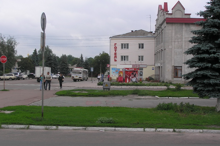 Его почти убрали и знак 1.11 поставили. А по поводу жилья, если не хочется совкового сервиса, можна снять квартиру посуточно, искать в гугле по Рент сервис Нежин (это не реклама, просто видел ту гостиницу ).