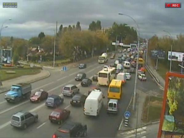 Немного выше перекрестка с ул.Кировоградской в сторону Севастопольской площади минус левый ряд (догонялки кажется), паралельно им в первом ряду 2 машины на аварийках, и паралельно им догонялка в крайнем левом в сторону Московской площади. При мне скорая уехала, ГАИ были.
