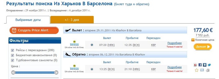 Но при том, что стандартная цена в Барселону через Вену из Харькова 220-240 евро