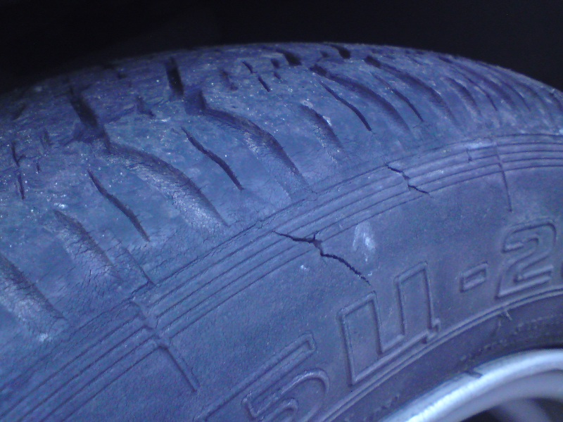 Ахаха Жесть вообще. Сам докатываю лето 06 года. Но блин, при возможности осматриваю. Если бы нашел такой ужас - нафиг менять. ТАкое чувство, что резина просто рассыпается.