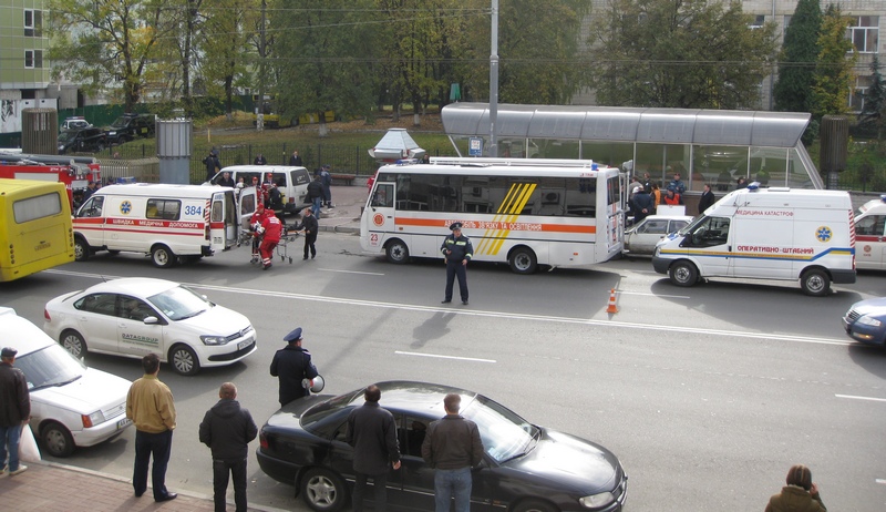 Надеюсь моего "малыша" не поцарапают носилками. А то прямо рядушком бегают, да ещё и менты толпятся...