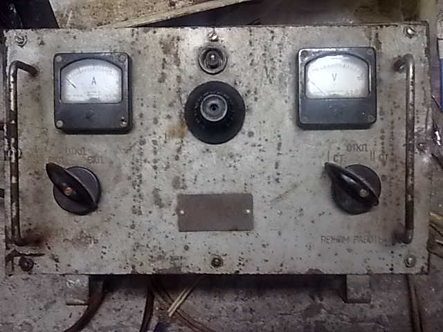 это зарядка благополучно стыренная из военного кунга. надежная вещь, если не крутить регулировку тока. а если крутить, то только при выключенном аппарате из розетки!!!!!! можно использовать как пускач только не долго.