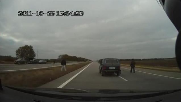 Позавчера между Николаевом и Херсоном тоже под колеса бросались. Я одному на ходу показал - он мне тоже ответил