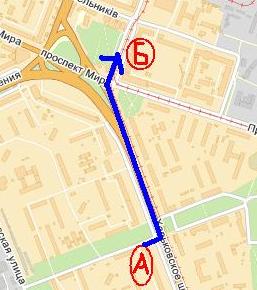 Да есть там проезд до Форы, под проводами не доезжая до рельс метров 30. Но опять же: слишком мало данных. Поэтому отвечая на сабж - желтая дорожка с поворотом с Мира на Чудновского.