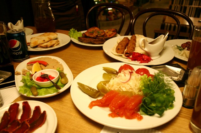А главное, обслуживание достаточно оперативное, а порции - приличные.Цена основных блюд там колеблется в пределах 60-120 грн., салат-меню - 35-50 грн, но это того стоит - каждое блюдо имеет свой особый вкус и колорит. Прельстило то, что хотелось отведать именно одесской кухни и во Франзле это у нас получилось.Отмечу пикантные одесские соления, фьюжн-салатики, фаршированая рыбка,хотя шашлычок там вполне ординарный... В общем тепло посидели на троих получилось 1100 грн с, почитай, праздничным столом...