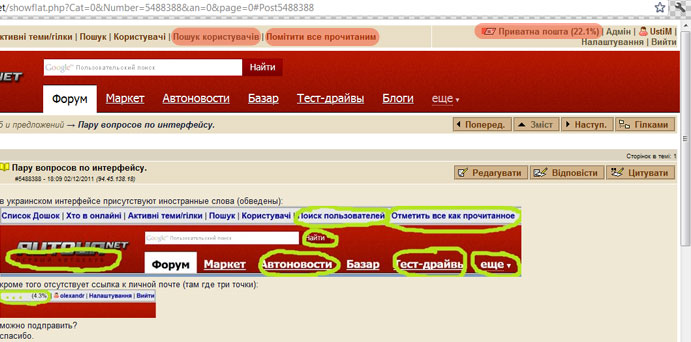 в украинском интерфейсе присутствуют иностранные слова (обведены): кроме того отсутствует ссылка к личной почте (там где три точки): можно подправить? спасибо.