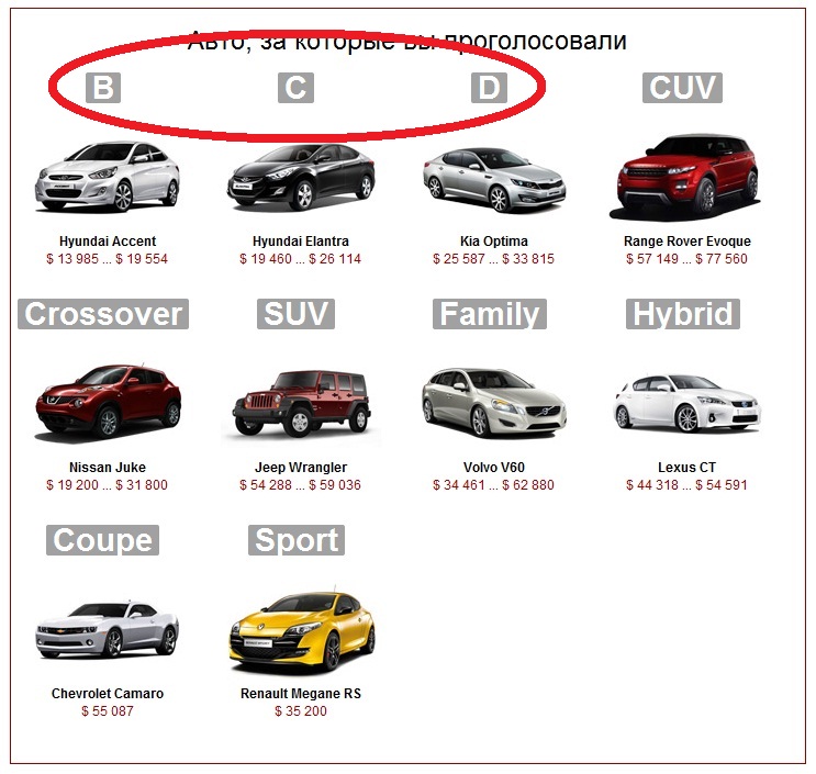 В классе "Спорт" - та же картина: давайте угадаем выбор большинства между Renault Clio RS ($ 30 730) (не в обиду создателям и владельцам) и Jaguar XKR-S ($ 203 743)(немного завидую белой завистью счастливым обладателям данного авто)...