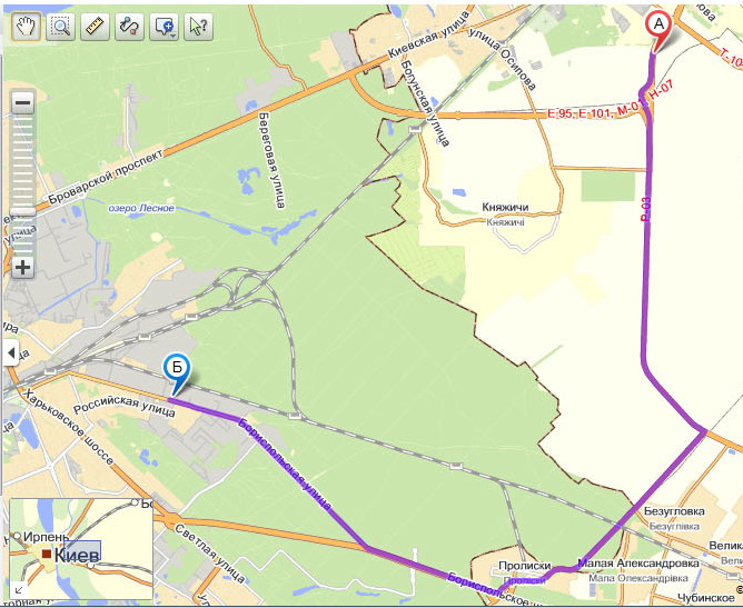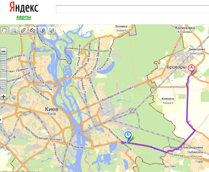 Из Киева с Броварского проспекта в Борисполь по окружной вот так карта
