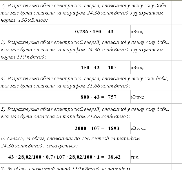 Эт не правильно, 150 льготных нуно делить пропорционально дневному и ночному расходу. Я пару квитанций так заполнил, а потом плюнул и своял в экселе бланк, теперь только показания дневного и ночного счетчика вбиваю.