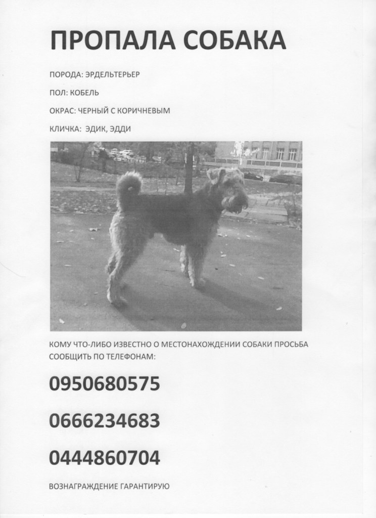 ПРОПАЛА СОБАКА - эрдель-терьер