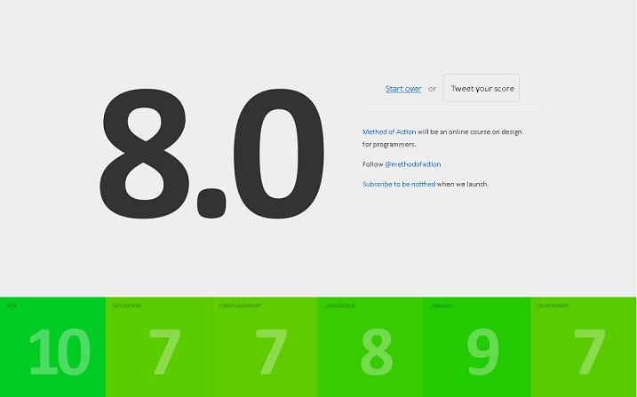 перша спроба 7,5 друга 8,3 це більше схоже не на тест монітору, а на вміння користувача швидко зорієнтуватись куди "бігти" по кольорах.