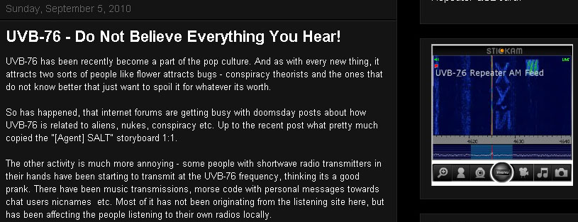 Именно. На ютьюбе даже валялась запись когда оператор что-то не то скомутировал и вместо жужжалки в эфир пошел телефонный трафик вояк... Предполагаю что кумуто изрядно выписали по такому поводу... В результате вся мистика стала прозой. Действительно вояки, действительно канал управления чем-то стратегическим, а жужжит (по одной из версий) для постоянного полуавтоматического тестирования.