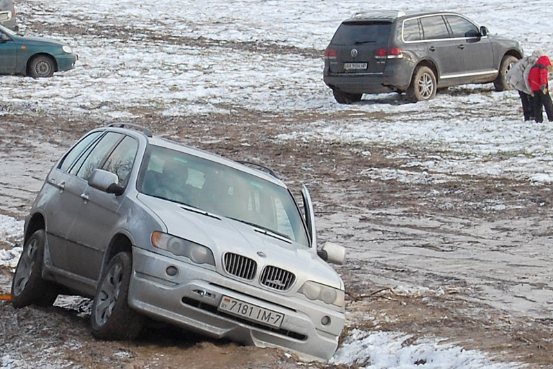 Ага. Как сейчас помню - пару лет назад жлобомасленица в Пирогово. И меня туда занесло. На выезде дикая пробка, я попробовал было через поле, помесил чуть грязь, еле выбрался на асфальт далеко от выезда и стою со всеми, жду просвета. И тут со второго ряда подвыпивший (!) пацанчик на Х5 просит пропустить его проехать в поле. На мою рекомендацию этого не делать (типа, не выедешь, я сам оттуда еле выбрался) он гордо так: "Спокойно, у меня полный привод!" В общем, его полного привода хватило секунд на 10 езды, после чего он застрял так, что люди диву давались! Там, в том поле только Хаммеры проезжали тогда, и то без энтузиазма.