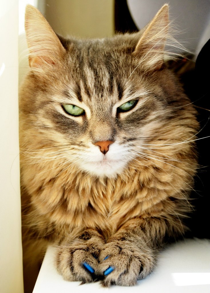 Главное подстрич ногтики и наклеить колпаки ибо котейка мяучит и злится т.е. не нравится ей, но а что поделать- терпит)))