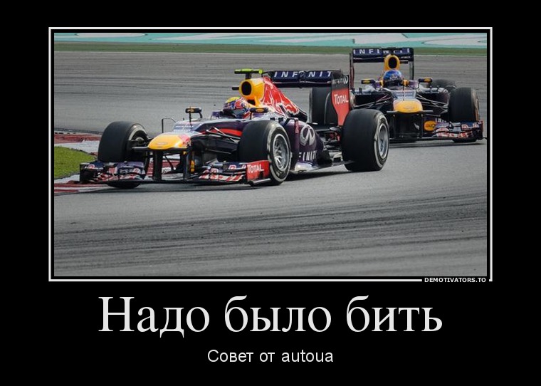 "смотрим Феттеля обгоны, сразу мысль, а как же фаны? тотчас в ФИА мы запрос, посылаем нивапрос"