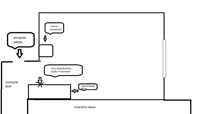 7 этаж 9 этажей дом , не могу понять каким боком там может быть чужой вент канал? схемку дорисовал. нашол вот фотку , красным куда хачу трубу вывести