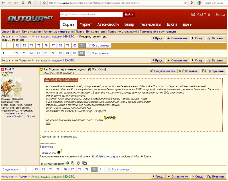 Вот с пару минут назад смотрел тему "Подарю, презентую, отдам.. (7)". На последней странице - постов нет. Написал пост в эту тему и после отправки поста автоматически попадаю на последнюю страницу, где моего поста нет. И вообще ни одного нет. Но зато мой пост (последний в теме!) есть на предыдущей странице...