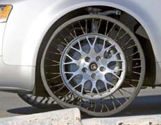 ".. Вместе с тем, в поперечном направлении этот гибрид ведёт себя как жёсткое колесо. По сравнению с обычной шиной жёсткость новинки выше в пять раз. На колесо словно наклеили цельнолитой слой резины с рисунком протектора. .."