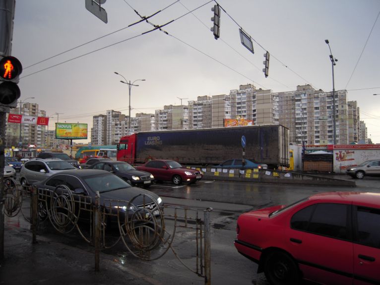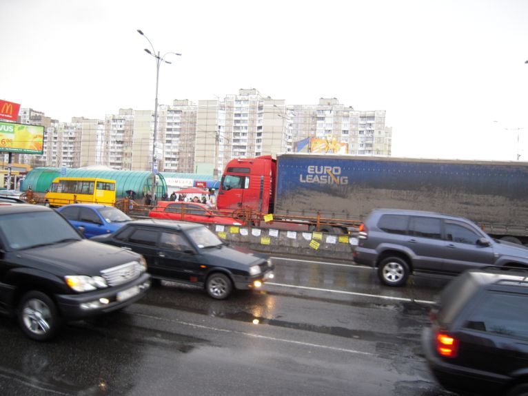 а вчера чуть далее стояла фура с разбитой мордой тоже в средней в сторону Победы