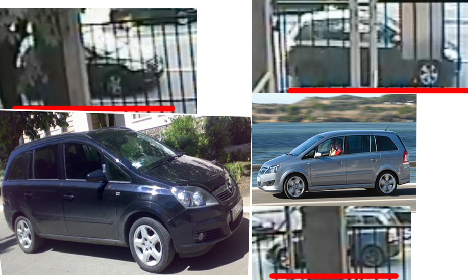рассмотрел. первая едет слева направо Kia Ceed хетч. Справа налево Opel Zafira( релинги на крыше. Треугольнички рядом с лобовым.) Вдоль заправки тот же сид проходит. Уверен.