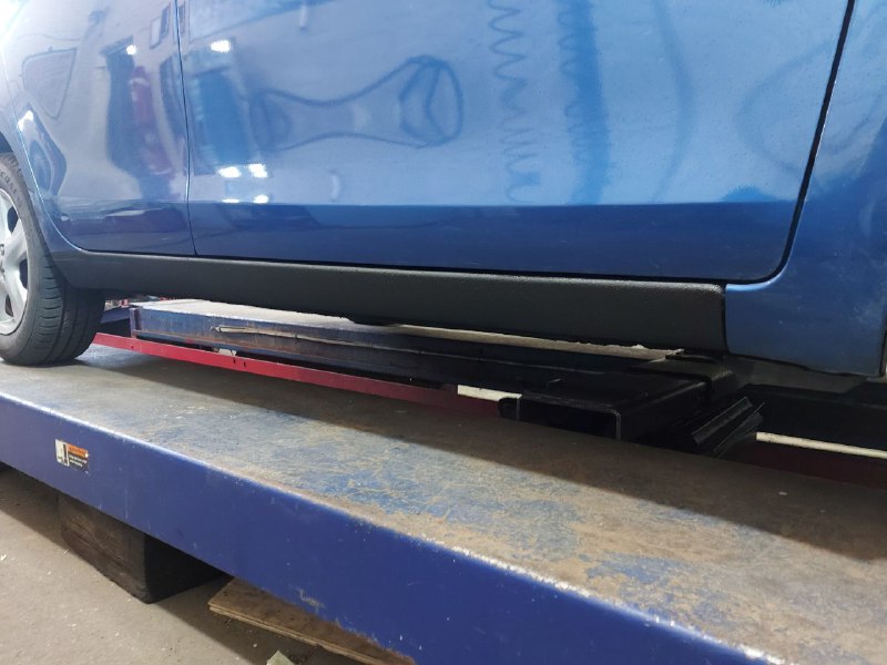 Владелица Toyota Yaris отказалась красить пороги, по совету знакомых попросила обработать антигравием (барашек, антигравий с ингибиторами коррозии). Участок обработки соглассован с клиентом.