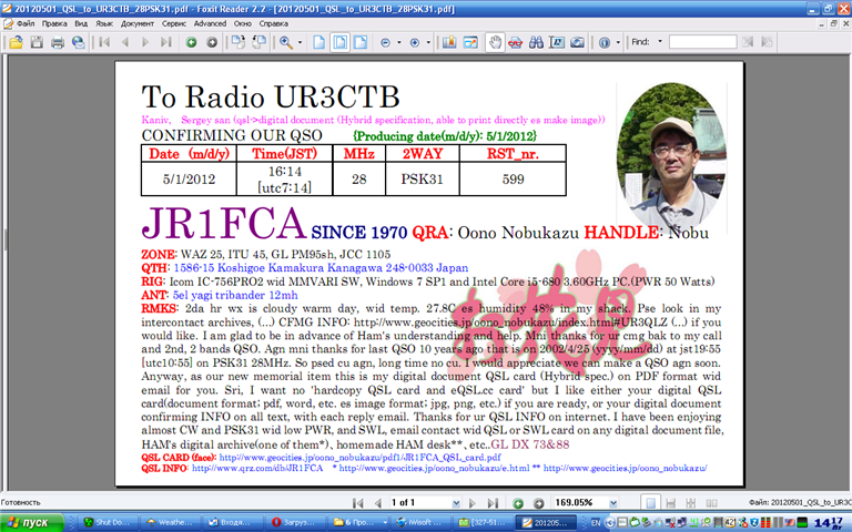 Андрей, получено! Да, я тебя позвал 3 раза! Ну по идее ты должен был меня принимать) Вчера был неплохой ход вечером на SA, а сегодня в пол пятого локал тайм чуток появился ход на японию, в телефоне на секу ответили 6 станций + одна новая префектура даже!!! Самого мощного записал
