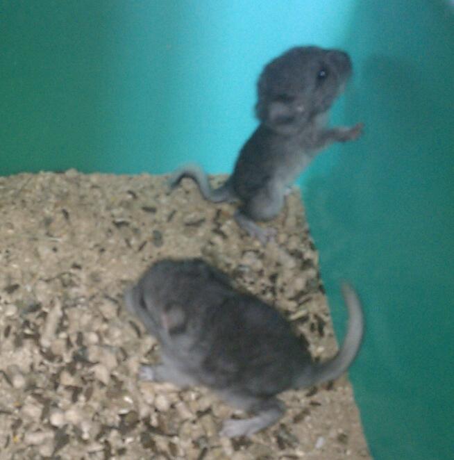 Шиншилка Маша родила двух маленьких. Мамаша и детки отлично, уже гоняют и дерутся. Отец деток ведет себя так, как будто ничего не произошло.