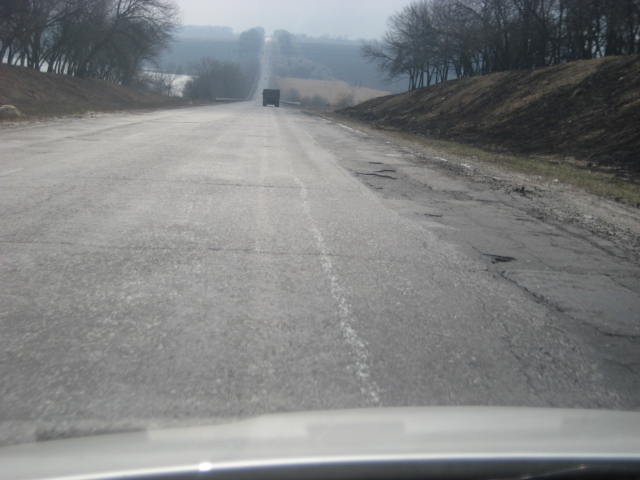 Все советуют через Харьков - на 50 км дальше, но скорость передвижения будет выше, там покрытие делали под Евро-2012г., до сих пор делают...покрытие не новое, но тщательно латаное! Вот апрельская фотка оттудова, Харьков-Изюм