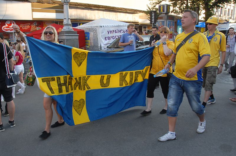 Во-первых, сборная Швеции одержала красивую победу, одолев французов со счетом 2:0. Во-вторых, шведские болельщики, поддерживавшие свою команду до последнего, подготовили признание в любви к Киеву.