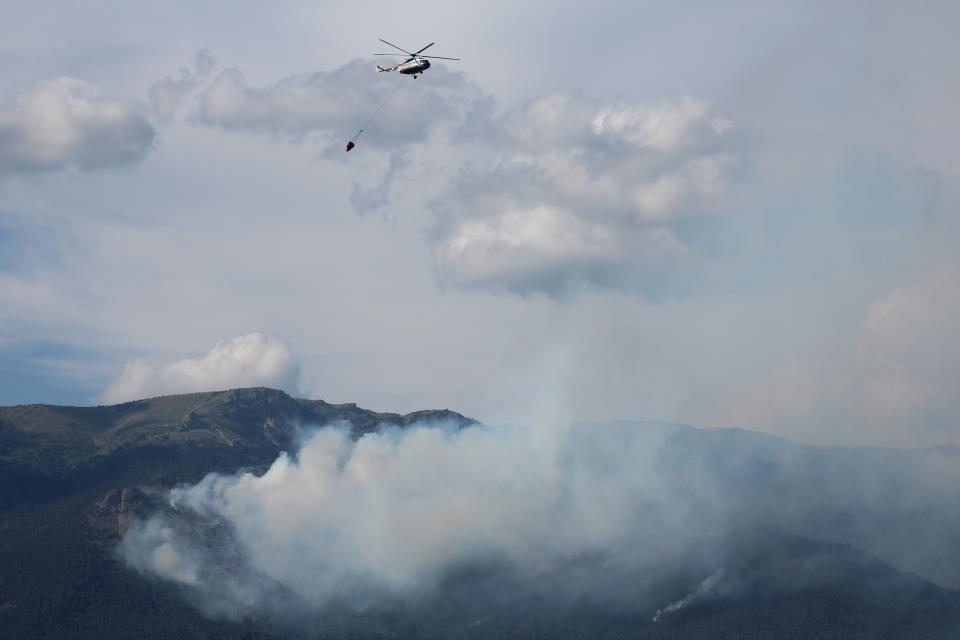 Чтобы оценить масштаб - на месте тушения работают 800 человек. Постоянно летают два вертолета и периодически подлетают два самолета. С плато скинули рукав длиною в 4 км.