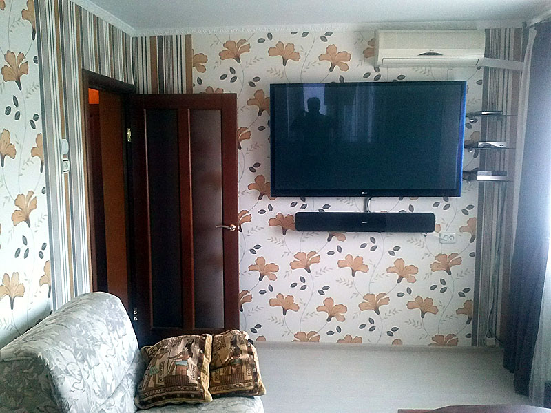 У меня там тоже тумба стояла раньще. Она сейчас отодвинута - на первой фотке снизу справа кусочек виден, я как раз на время фото ее убрал. Она конечно провода загораждивает. Но она занимает безумно много места и "нагружает" при входе. Я бы тебя отговорил от тумбы, сам по крайней мере ушел от этой идеи. PS: Сразу думай о домашнем кинотеатре - куда поставить и куда прятать провода. Потому как звук телека мерзкий по сравнению даже с тем бюджетным "SoundBar", что у меня висит.