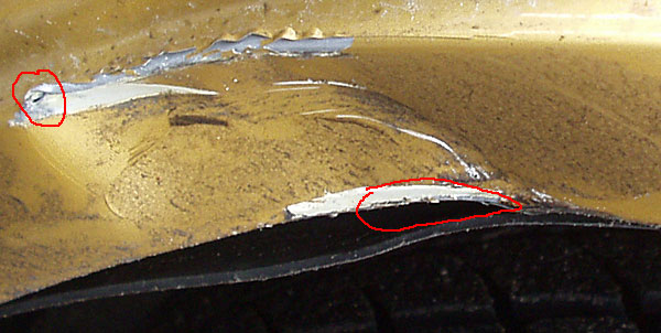 Я немного подредактировал картинку и выделил красным места где порвался метал.