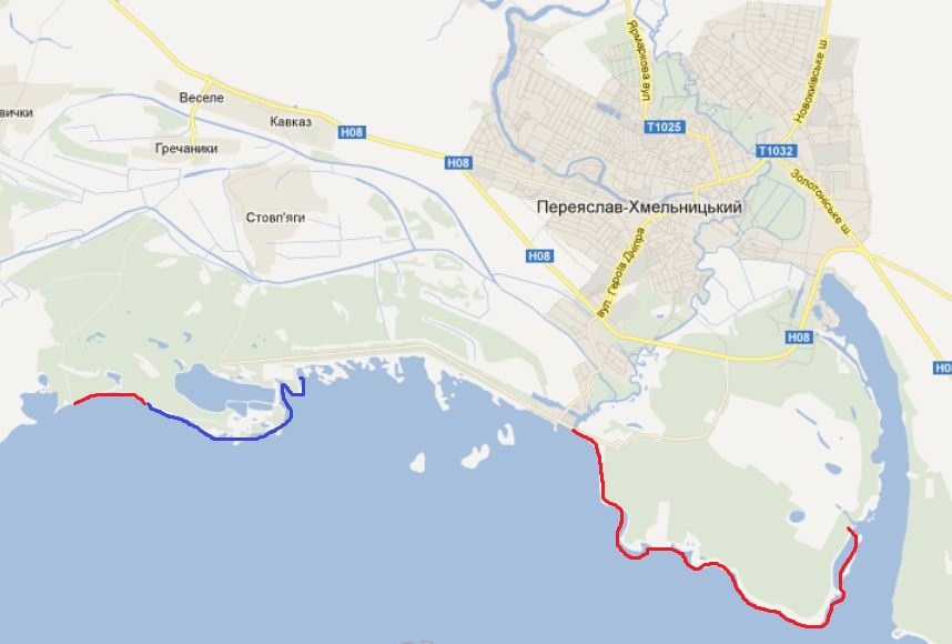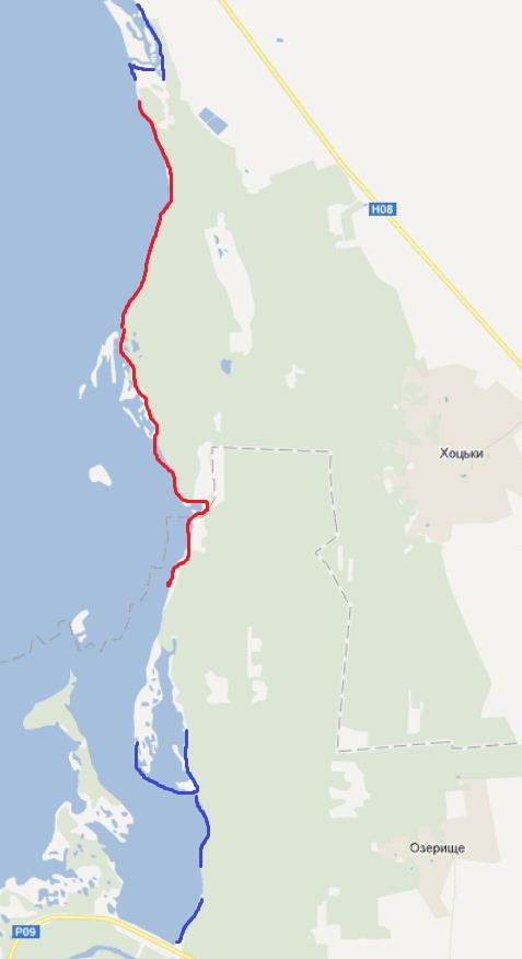 Підкажи, будь ласка, як там до берега проїхати . Колись шукав: проїхав ліс від Цибель до моста на Канев, до берега зміг виїхати лише біля дамби Синім кольором позначив місця, де я дістався берега Червоним - до хотів би побувати...
