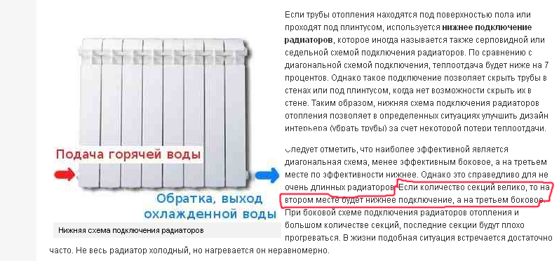 так это однотрубка и в ней разумеется совсем по другому, и разумеется подача только снизу и обратка снизу:-) у автора же двухтрубная система. и здесь уже важно где обратка где подача