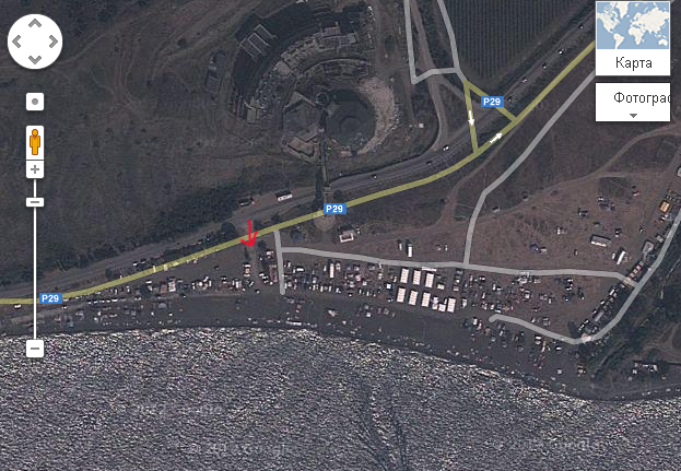 Ага, я понял, а я останавливаюсь там где большой тополь у берега, а дальше небольшая посадка(это в сторону Солнечного камня), а заезд через пансионат, а мимо указанного места в посёлок ходим. Так выглядит сверху