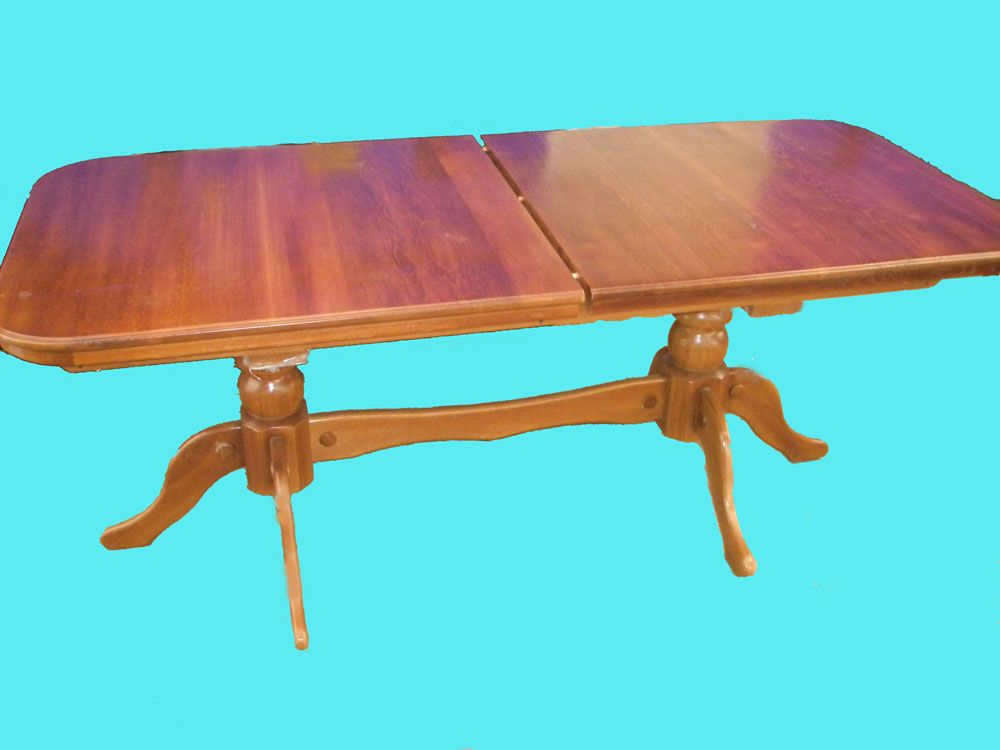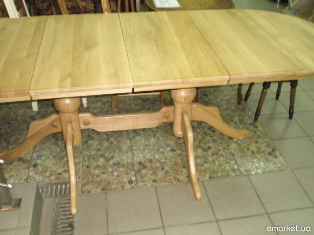 На 3 метровый стол ставится усиленный механизм,форма делается прямоугольная с закругленными углами, раздвигается при помощи тросов по принципу телескопа на три позиции. Есть более дешевые механизмы, но у них раскладка максимум на 90 см., и они менее крепкие. Такие ставят на столы 1600х900+450+450 мм., их вполне хватает.Изготавливаем около 5-6 недель, 4 недели на сушку и неделя или полторы на сборку. Производство на Волыни в Луцке. Лаки используем Итальянские полиуретановые 2 компонентные.