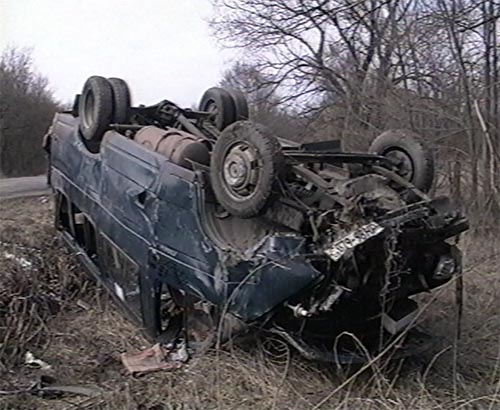 Таврия в кювете не бывала. На фото перевренутой лежит ГАЗель. Я не верю что в этой ГАЗели пострадал только один человек из 11-ти...