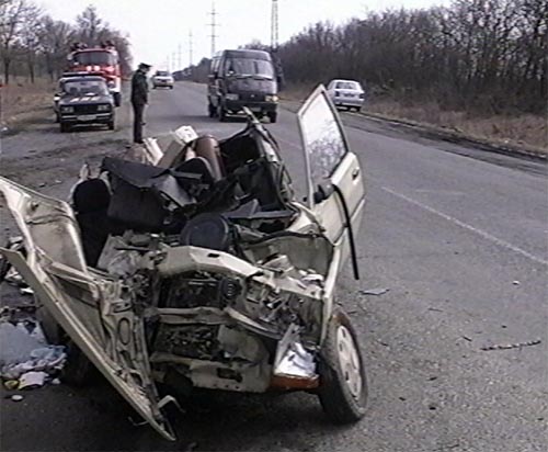 А как насчет того, что, если верить Магнолии, обе машины двигались в одном направлении? "Автомобиль "Таврия", следовавший из Запорожья, выехал на встречную полосу, и столкнулся с маршрутным микроавтобусом "Газель", который двигался по маршруту "Запорожье-Гуляйполе". Откуда тогда лобовуха? Не многова то ли "опечаток" для двух абзацев?
