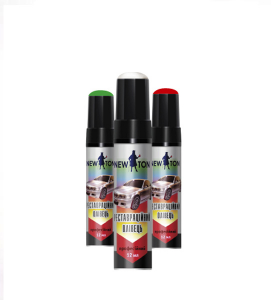 Колбочка с краской и кисточкой, похожей на кисточку из лака для ногтей. Есть практически влюбом автомагазине. Вот типа такого